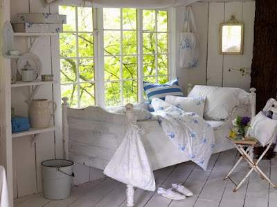 Wouldn't it be lovely to take an afternoon nap in this dreamy daybed? (I think I might just spend a little too much time there....)This sweet guest bedroom is actually found in a tree house.